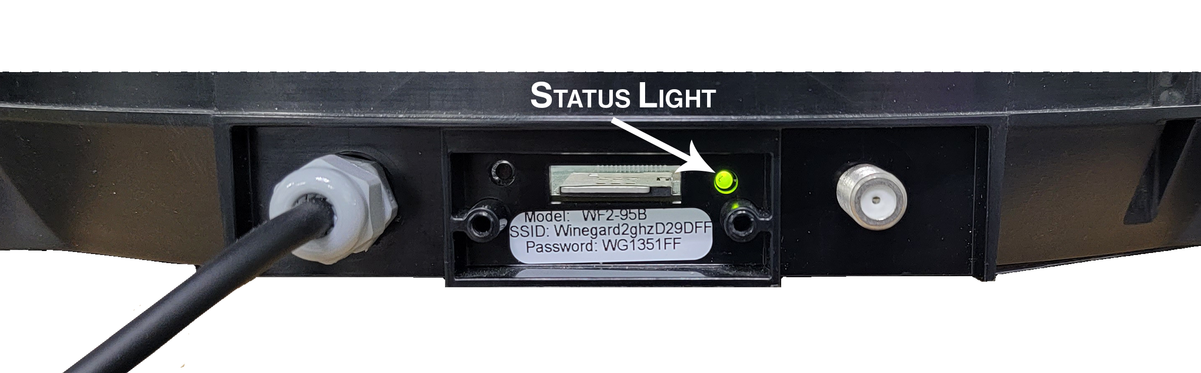 Check the Status Light: If the status light on the back of the Gateway is lit, the system is receiving power. If not, proceed to the next step. Light location will vary based on production date.